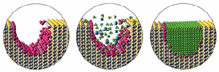moléculas. Assim, sobre a base velha, inicia-se a formacao de uma superficie nova.